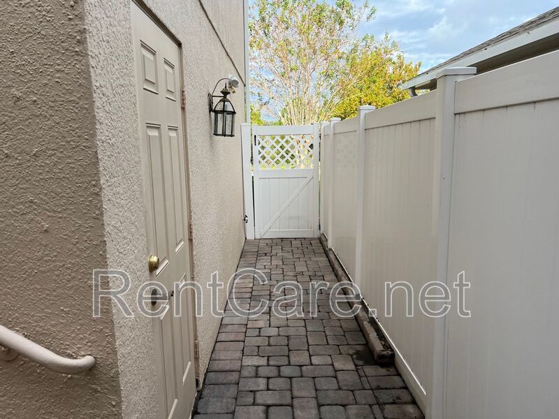 Spacious 3/2.5 townhouse, located in Summerport Community in Windermere! Summerport Community offers residents a pool, fitness center, volleyball courts, tennis courts, playground, and clubhouse. This 2-story townhome provides a warm welcome, with a paved walkway leading to a cozy front porch area for relaxation. The interior has been painted a lovely neutral gray throughout all rooms. The large and open fully-equipped kitchen offers updated granite counter tops, impressive 42" maple tone cabinetry providing plenty of storage, double basin sink, and breakfast bar. The kitchen shares an open area with the dining room. The floor plan features a living room with French doors leading to the paved back patio, and a formal dining and living room. Half bath located downstairs for guests. Family room is wired for surround sound. Tile flooring downstairs, with carpet flooring throughout the upstairs. All bedrooms are located upstairs and offer ceiling fans. The tray ceiling master bedroom is vast, and has a master bathroom with dual vanities, large garden tub, separate step-in shower, and walk-in closet. Guest bathroom features shower/tub combination. Home has interior laundry room, tenant must provide their own washer and dryer. Two car detached garage is available for tenants use.